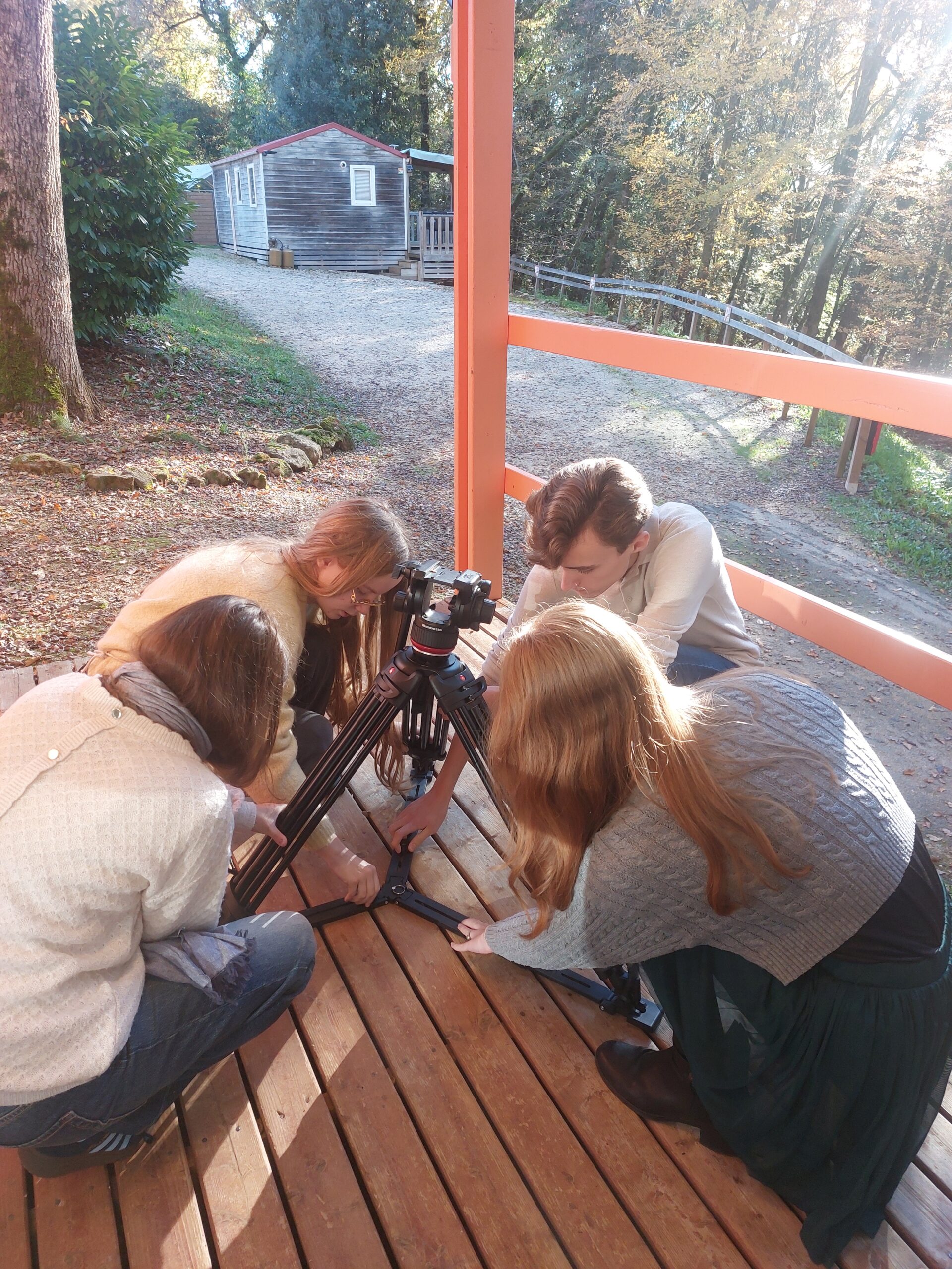 Sur place, les étudiants ont pris leurs quartiers dans les chalets du Périgord, transformés temporairement en « base de vie » : discussions scénaristiques dès le petit-déjeuner, incessants sacrifices de plans trop ambitieux pour réduire le découpage de trente à dix plans, plan au sol du plateau, tests techniques sur la caméra et la perche, gestion des accessoires. L’ambiance de travail est studieuse.