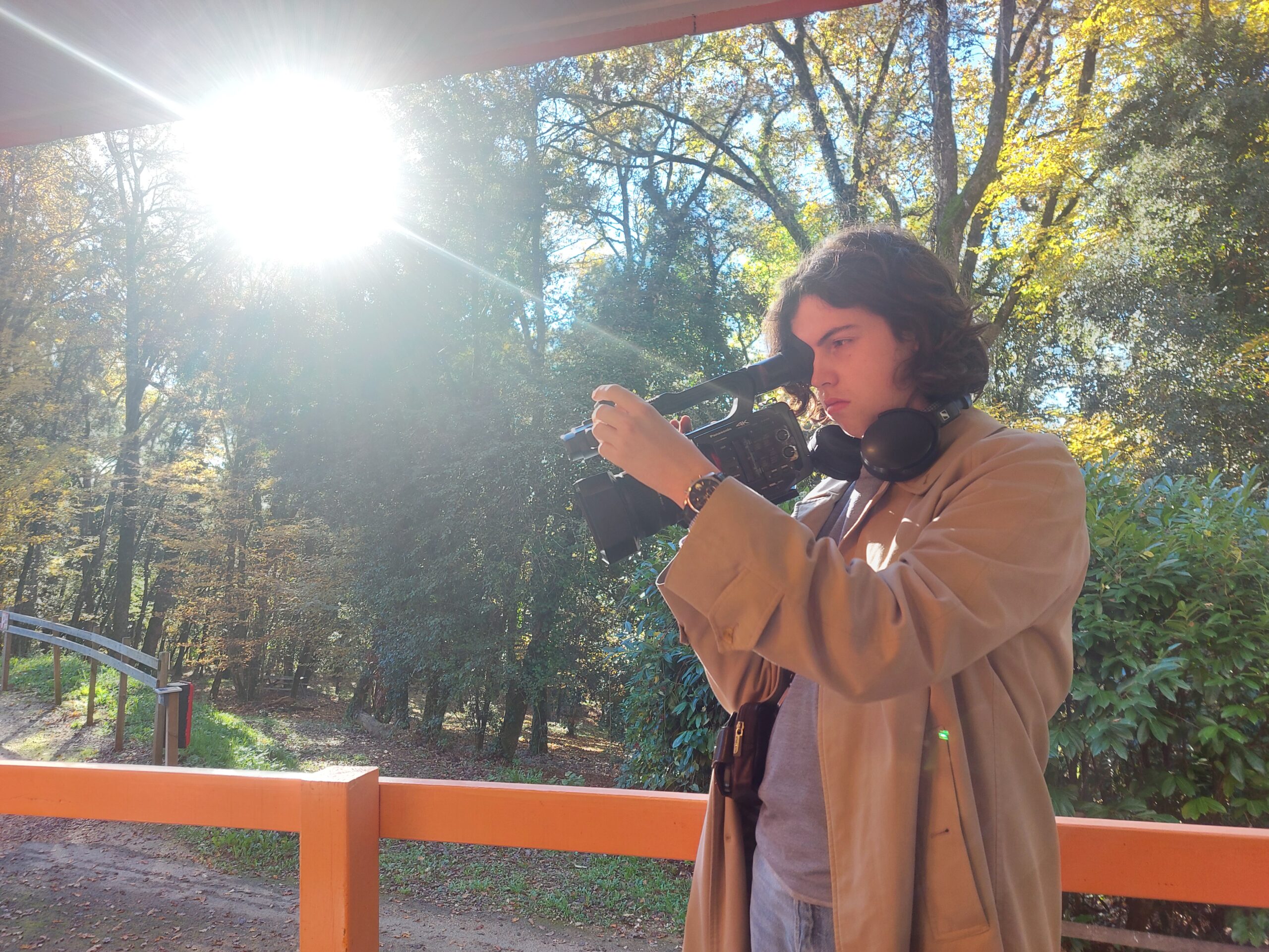 En classe, les étudiants ont chacun au préalable écrit une note d’intention qui a déterminé celui ou celle qui prendra la charge de la réalisation. La réalisation a été confiée à Zoé qui a opté pour un traitement tragico-comique et absurde de cette séquence nourrie de nombreux clins d’œil cinéphiliques. Après un premier partage des suggestions de mises en scène signifiantes au regard de ce projet, un découpage technique a été élaboré collectivement, puis chacun s’est attelé à faire sien le rôle qui lui a été attribué : Albin, notre cadreur, s’est essayé à un travelling compensé en caméra-épaule que nous devons sacrifier à la réalité du tournage ; Aubin a pris la charge de la photographie du film, Jade celle du son, et Adèle le scripte ainsi que le plan de travail qu’elle conçoit en partenariat avec Zoé.